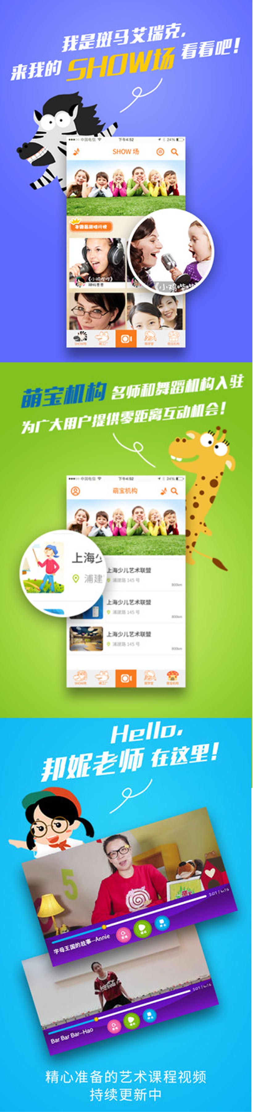 萌宝秀获得了无数艺术机构与老师的大力支持,每周都有更多的艺术名师和明星机构强力入驻。 让孩子们零距离体验老师的授课风采。萌宝秀更是辣妈帅爸们的偷懒神器, 再不用辛苦的一家家机构的试听试看,APP中线上预约课程, 观看老师视频,让孩子先体验,再报名。