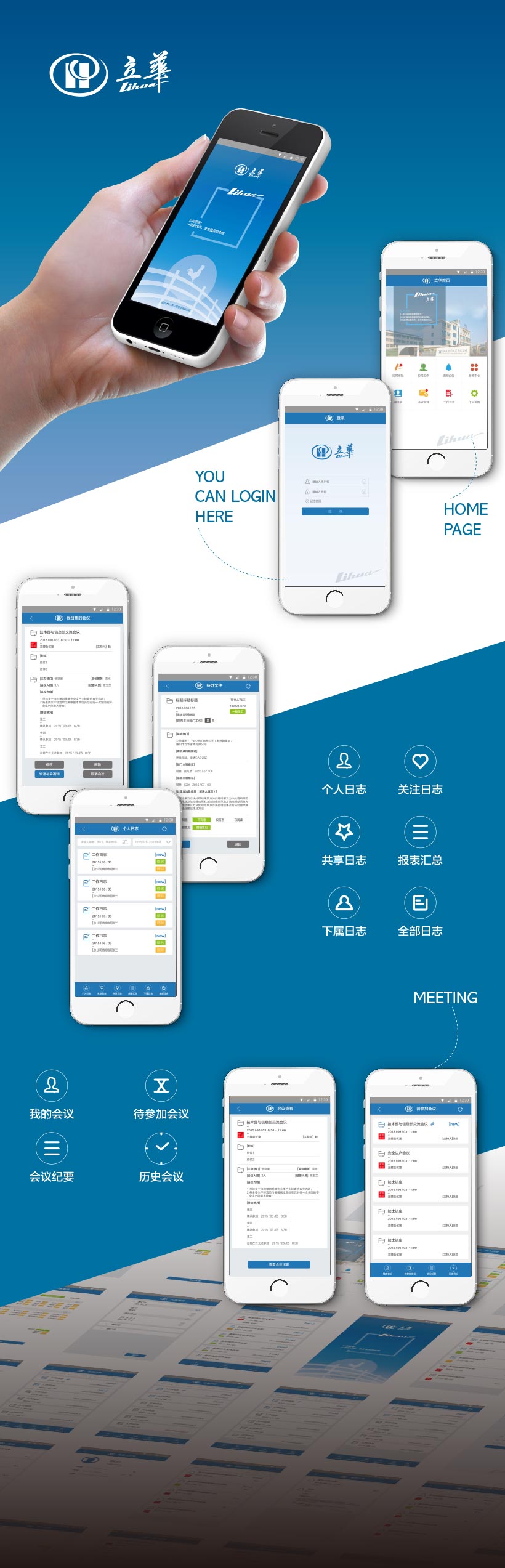 通知公告、新闻中心、通讯录、会议管理、工作日志等全部核心功能。